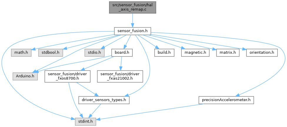Hardware Abstraction layer for the particular sensors used. Depending on the design of the sensor PCB, the axes of the sensor ICs are not necessarily oriented as assumed by the fusion algorithm. This file defines the axis remapping functions that are always applied to the raw data before processing.